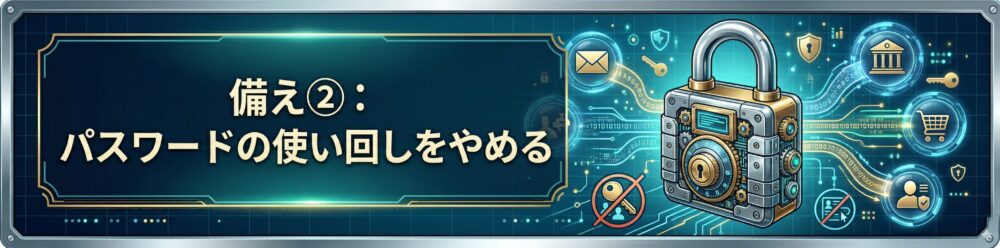 備え②:パスワードの使い回しをやめる