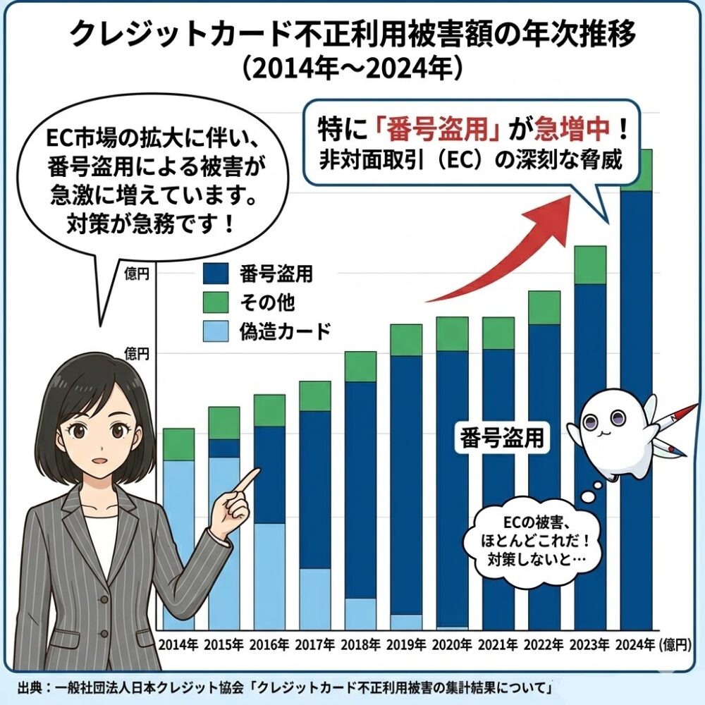 クレジットカードの不正利用被害は、もはや看過できないレベルにまで膨れ上がっている。